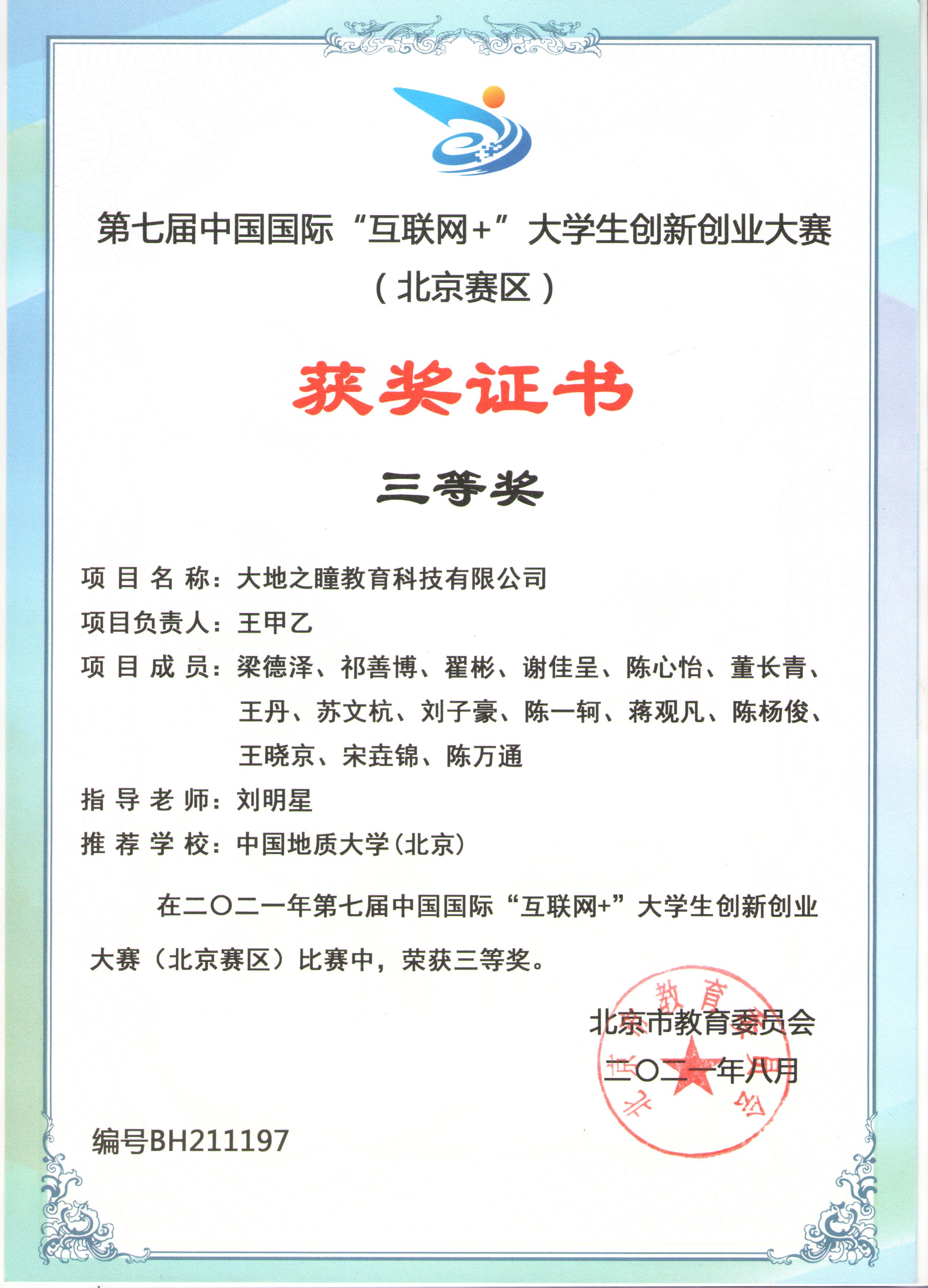 2021年第七届中国国际“互联网+”大学生创新创业大赛(北京赛区)三等奖(1)