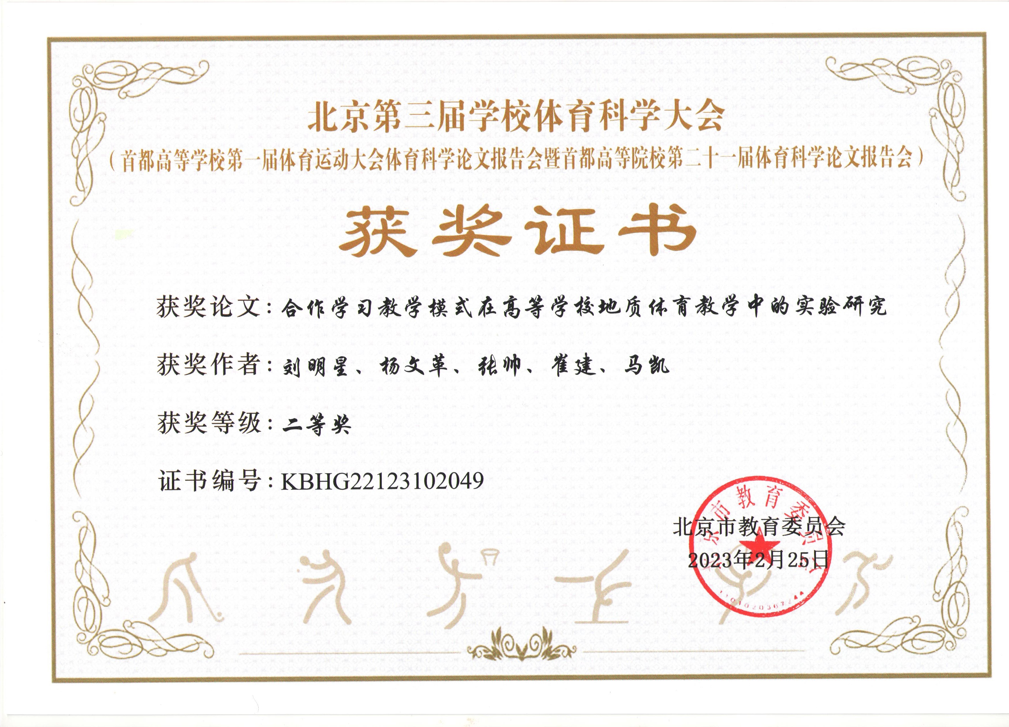 首都高等院校第二十一届体育科学论文报告会二等奖