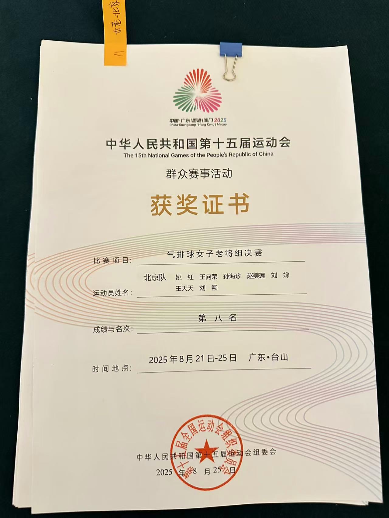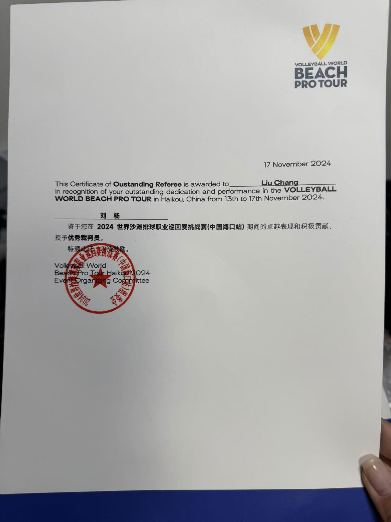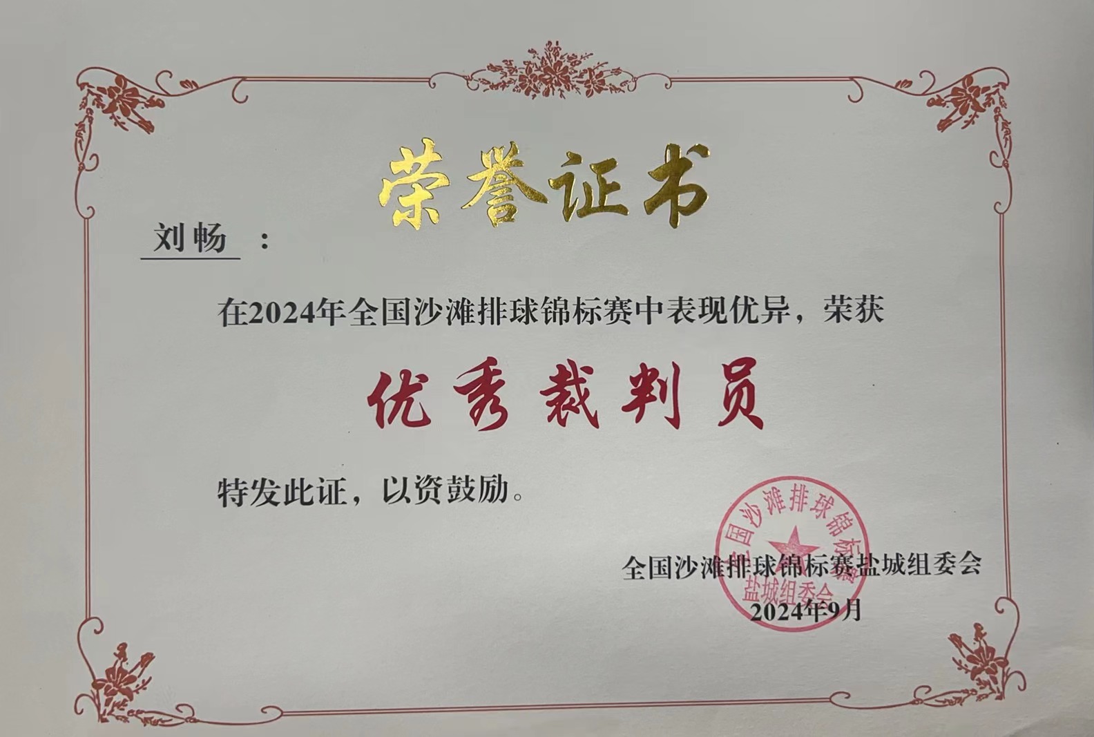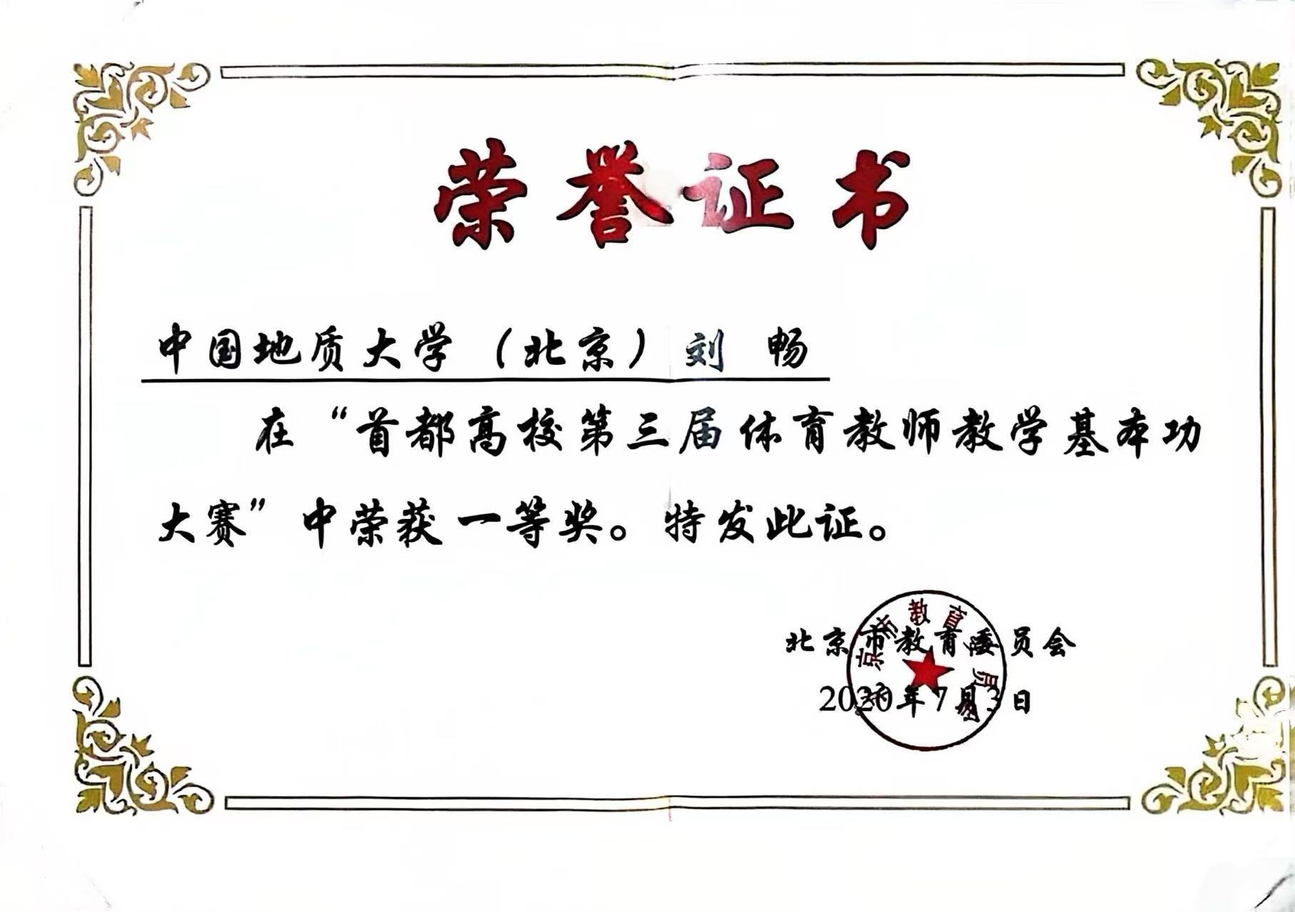 刘畅的获奖证书