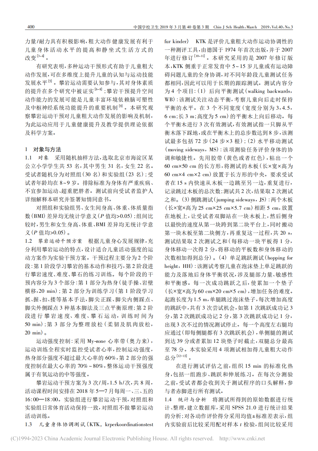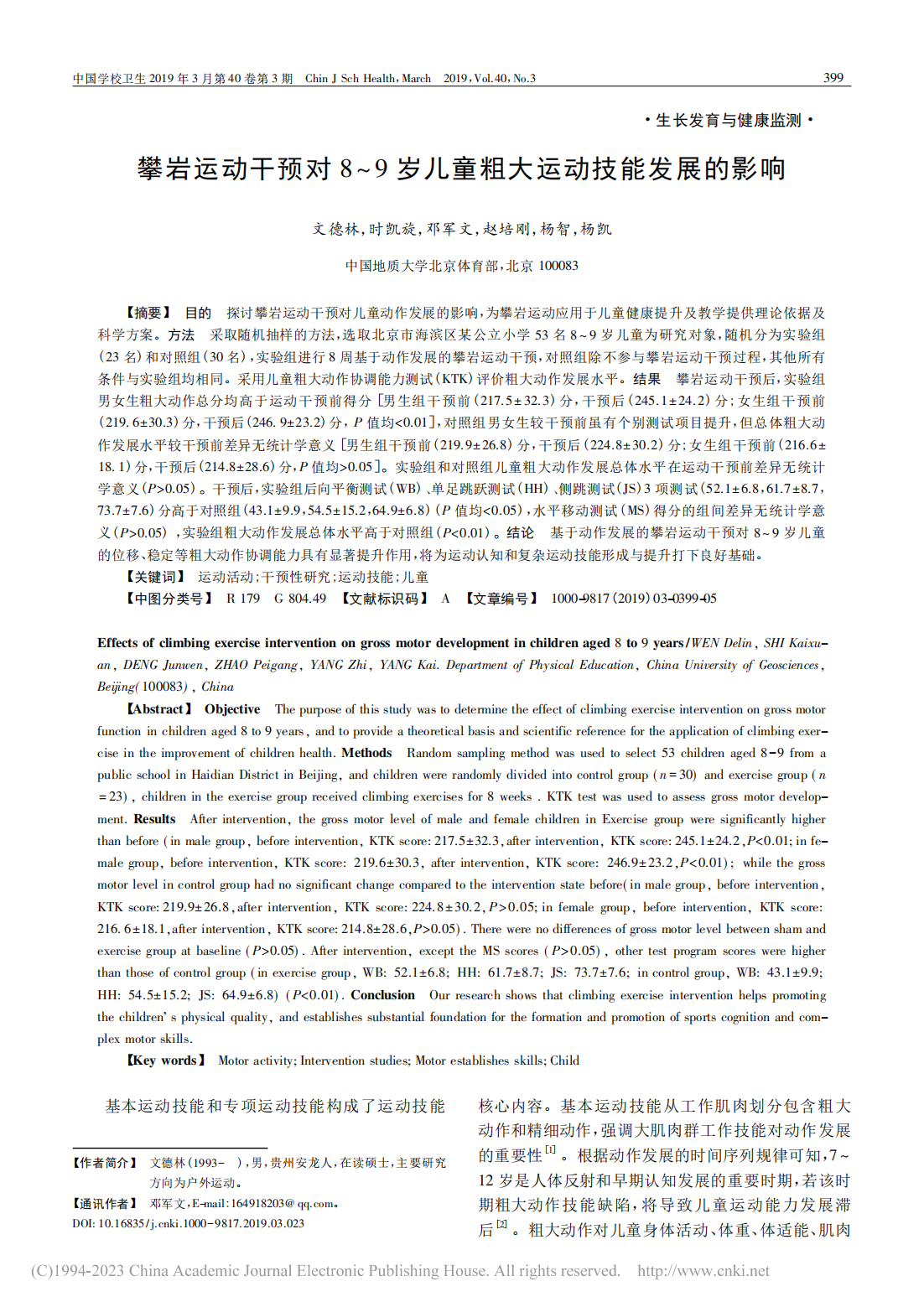 攀岩运动干预对8~9岁儿童粗大运动技能发展的影响_文德林_01
