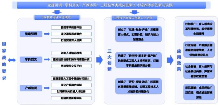 通过党建引领铸魂打造育人新范式:学院坚持党建引领五学,推进一融双高,创新实施“五字学习法”,赋予“三全育人”新含义,打造“初心微党课”、“探工学堂”等特色党建品牌,构筑起“大思政”教育新格局,有效实现了思想政治教育与专业教育的同频共振。通过学科交叉融合打造育人新模式:学院主动适应新工科发展趋势,建设新工科专业集群,组建本研贯通人才培养班级,实施“厚基础、宽口径、重实践”的培养模式,构建特色鲜明的教育生态。通过产教协同打造育人新标杆:学院坚持实践导向,组织师生深入国家重大工程项目第一线,让学生在服务国家战略的实践中历练家国情怀、心怀国之大者、增强工程创新能力,实现了真正意义上的“把论文写在祖国大地上”。