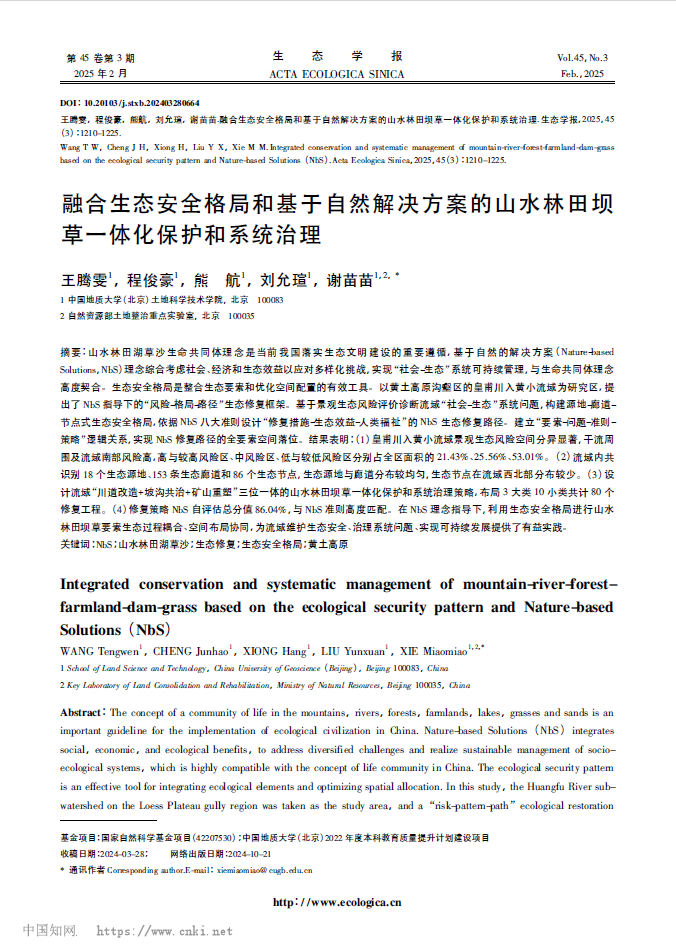 融合生态安全格局和基于自然解决方案的山水林田坝草一体化保护和系统治理 |