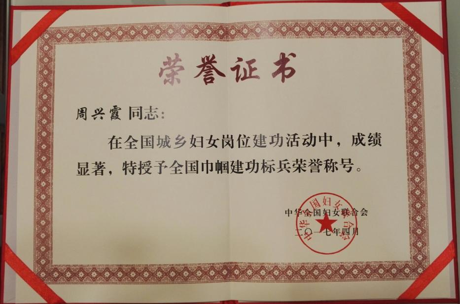 周兴霞:2017年被中华全国妇女联合会授予“全国巾帼建功标兵”荣誉称号 38
