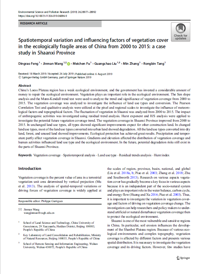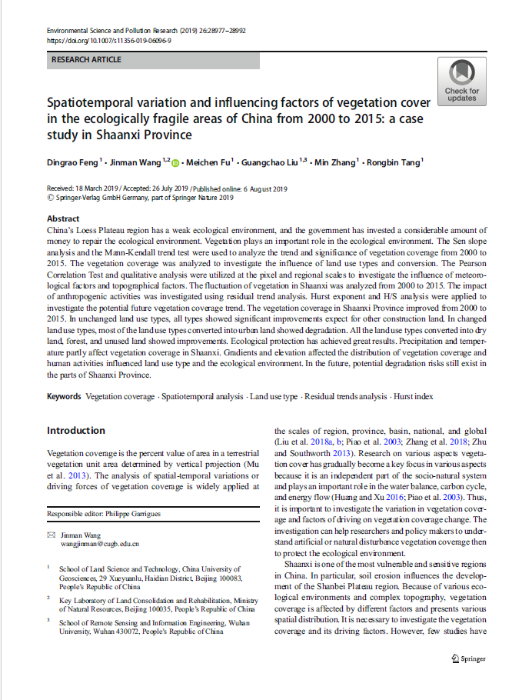 Response of?erosion sensitivity to?land use change in?populated areas: a?case study of?the?middle and?lower reaches of?Yangtze River |