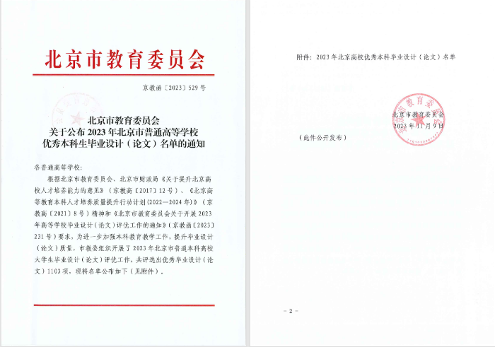 (5)2023年北京高校优秀本科毕业设计(论文)名单 |