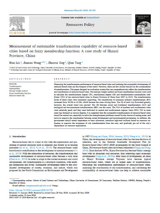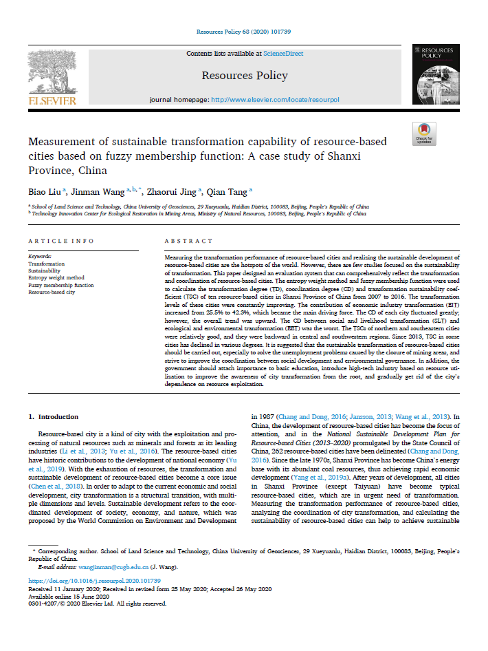 王金满、白中科、冯喆、胡业翠、钱铭杰、