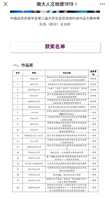 33、第三届全国大学生自然资源科技作品大赛,一等奖:指导教师:谢苗苗,2021.12