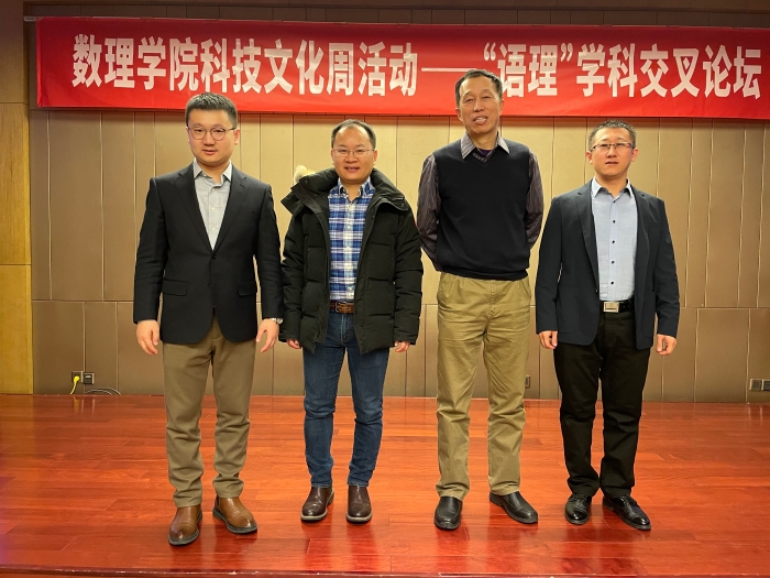 图2-10 黄洪伟、申俊峰、刘金高和许博教授在“语理”学科交叉论坛上做邀请报告