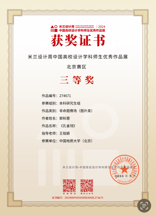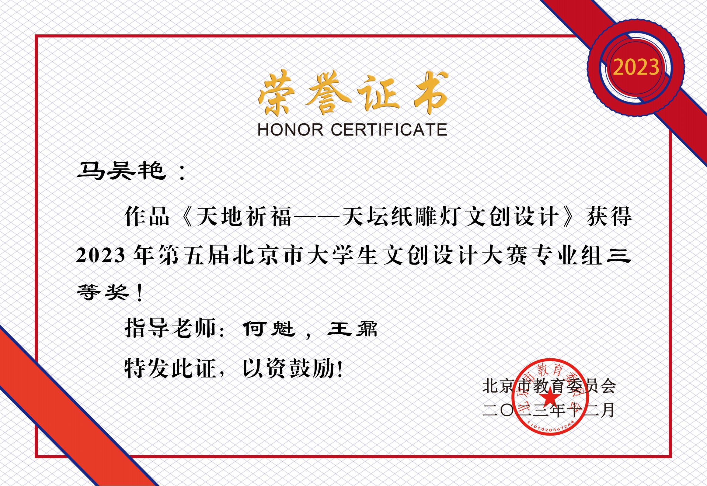 第五届北京市高校大学生文创设计大赛专业组三等奖
