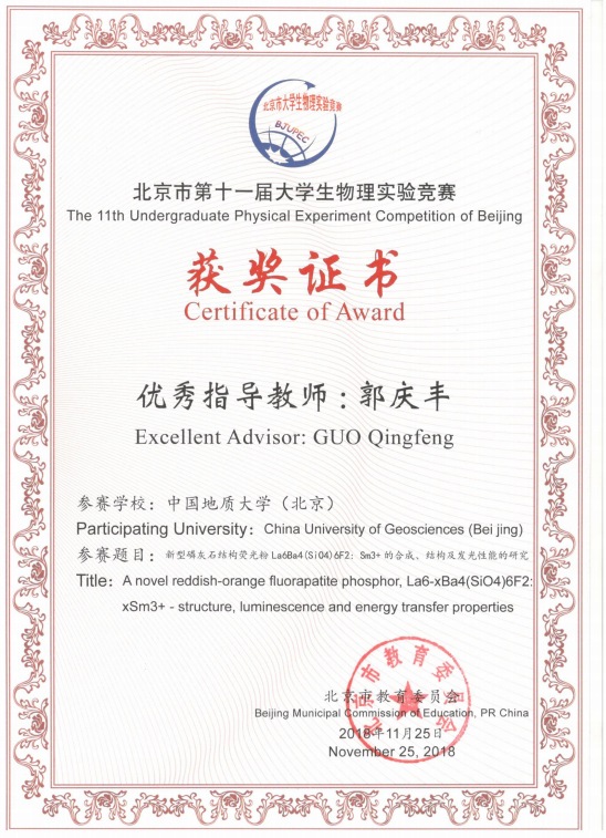 北京市第十一届大学生物理实验竞赛优秀指导教师奖