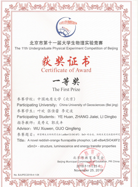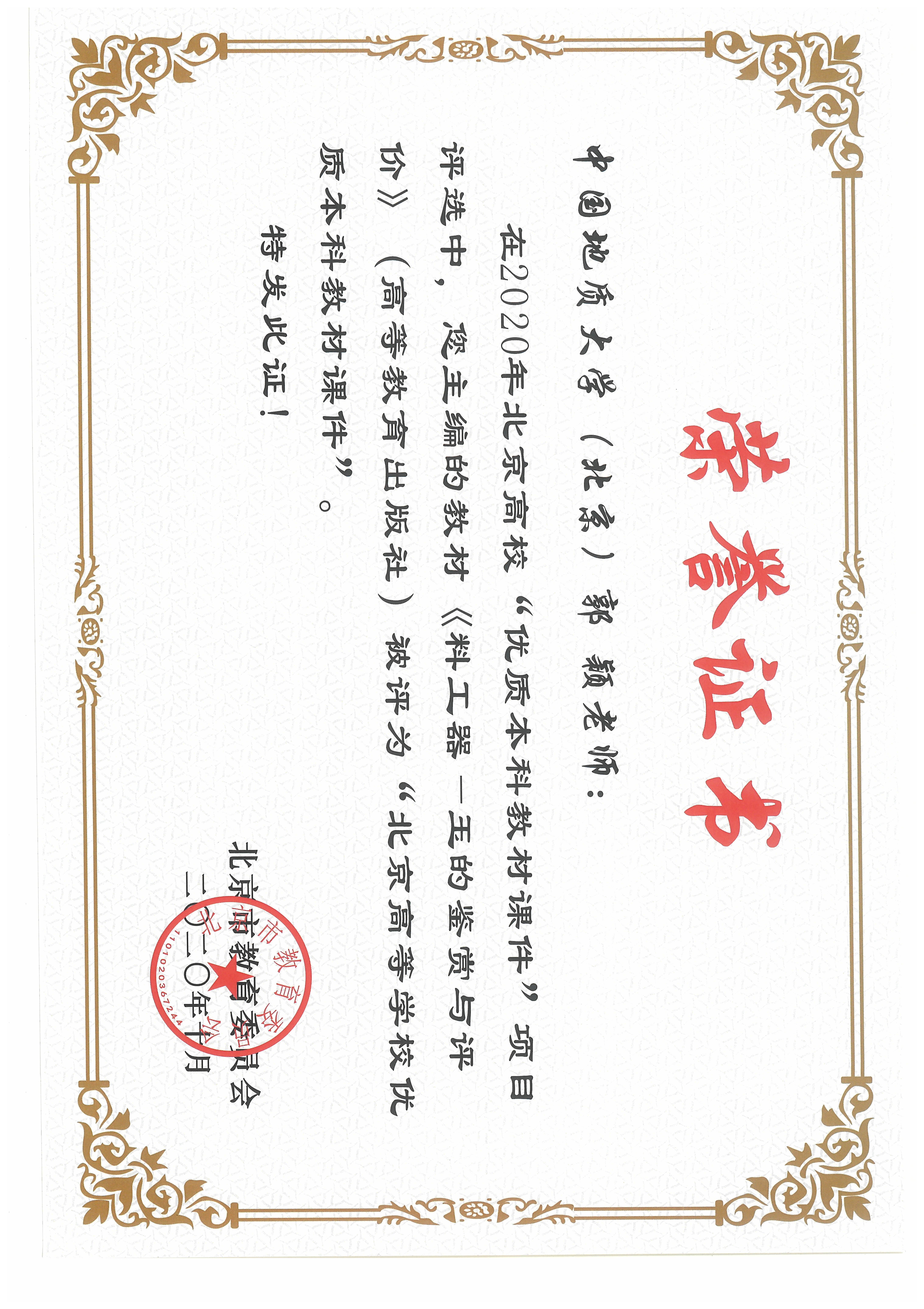 2017年北京市高等教育教学成果一等奖中国硅酸盐学会青年科技奖提名奖