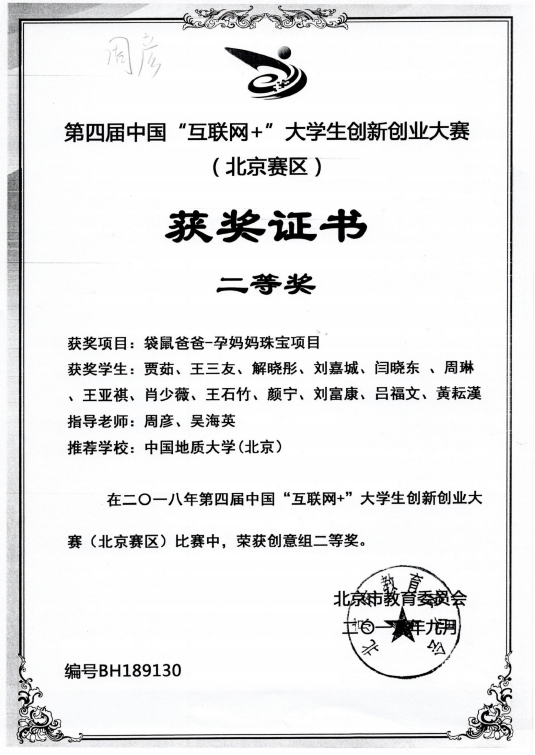 第四届中国“互联网+”大学生创新创业大赛创意组二等奖
