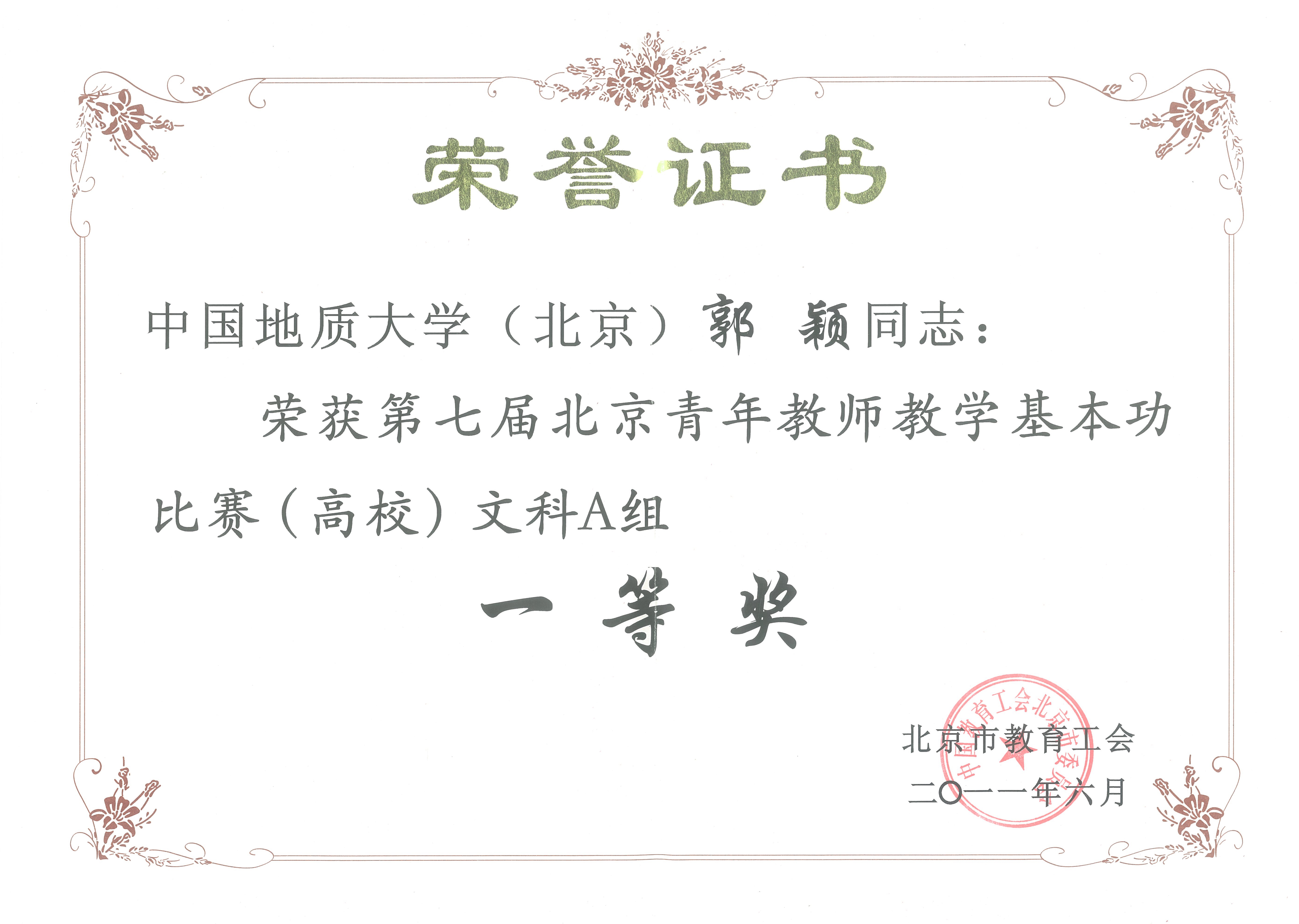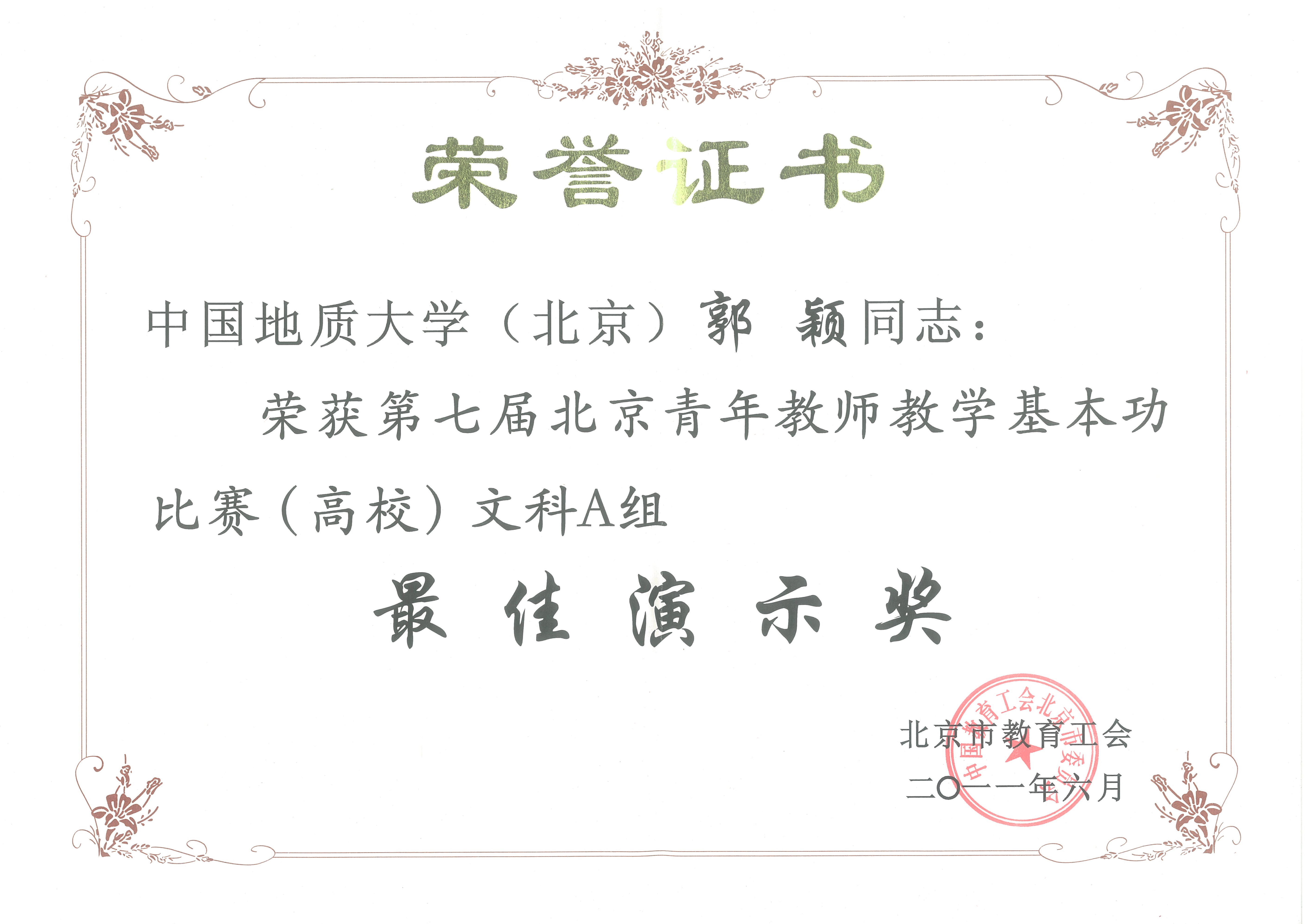 北京青年教师教学基本功比赛文科A组最佳演示奖
