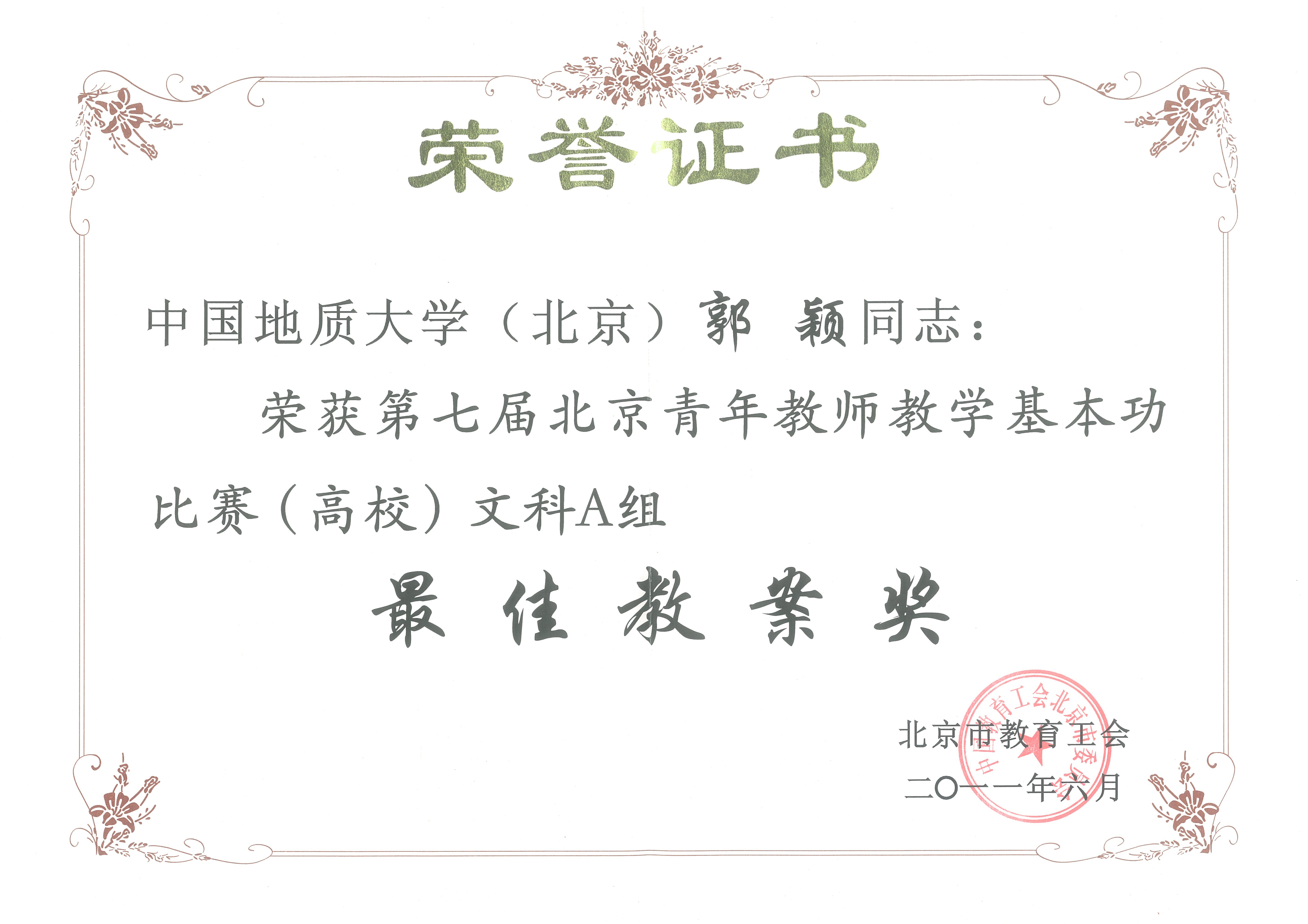 北京青年教师教学基本功比赛文科A组最佳教案奖