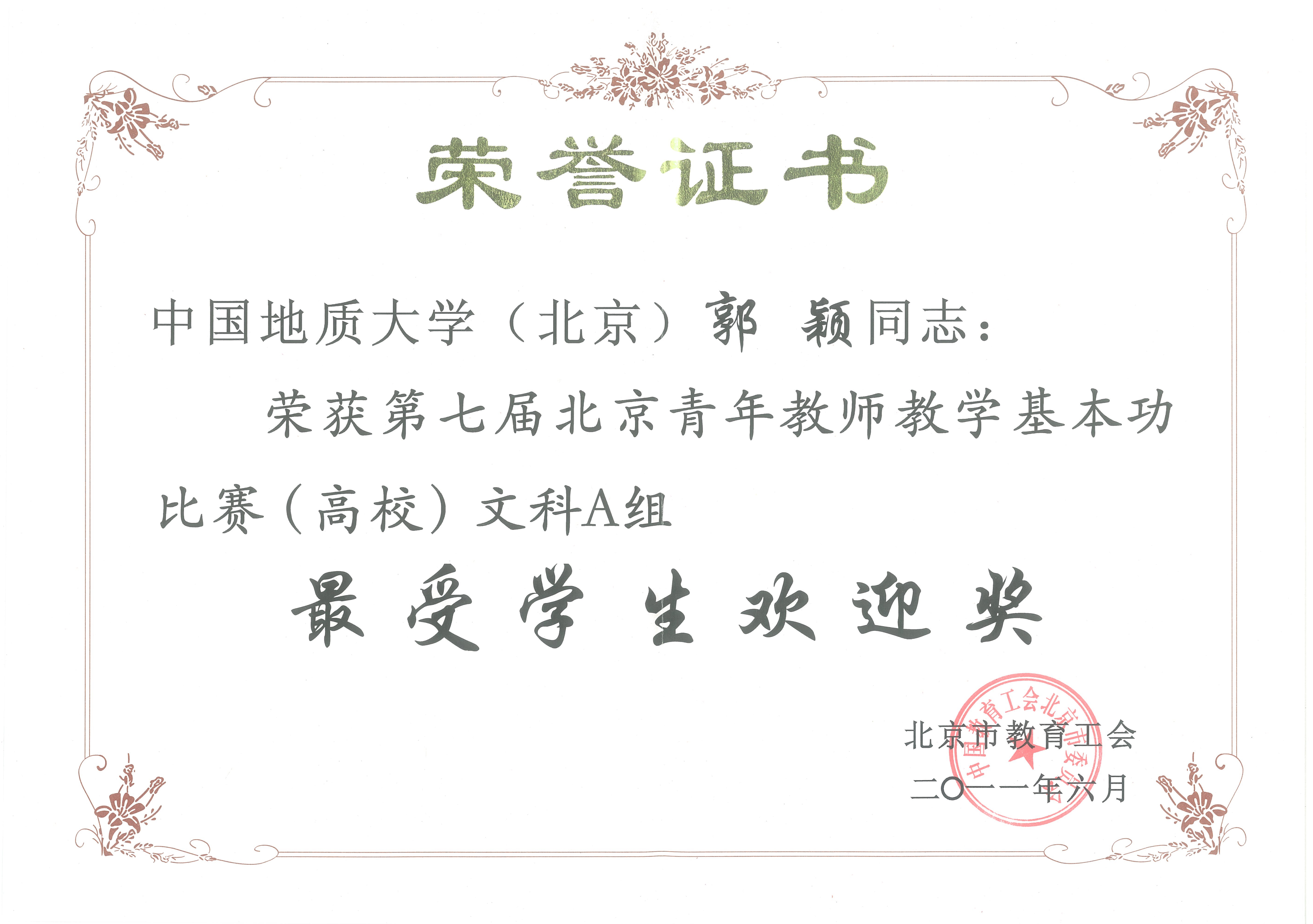 北京青年教师教学基本功比赛文科A组最受学生欢迎奖
