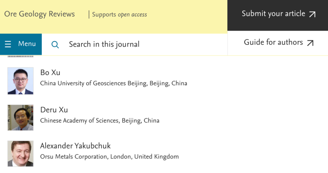 许博获聘国际三大矿床学主流权威期刊之一 Ore Geology Reviews副主编