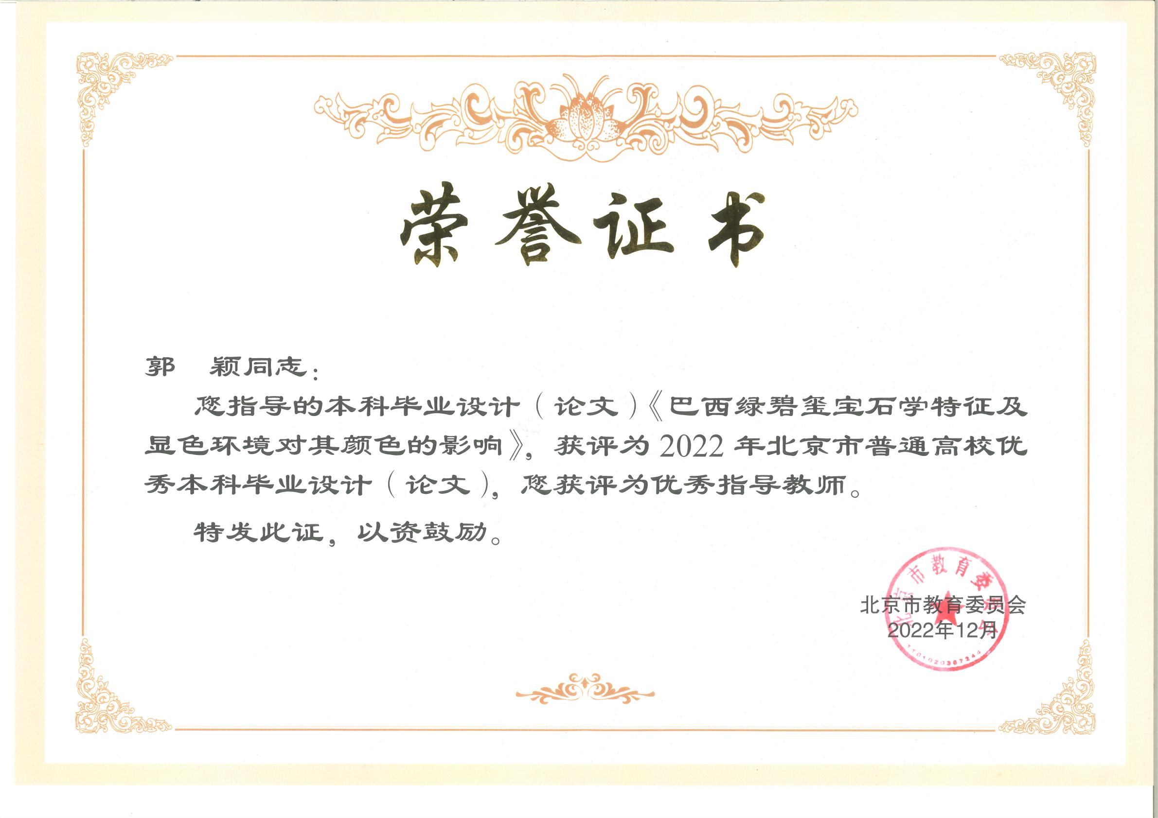 2022北京市普通高校优秀本科设计(论文)优秀指导教师