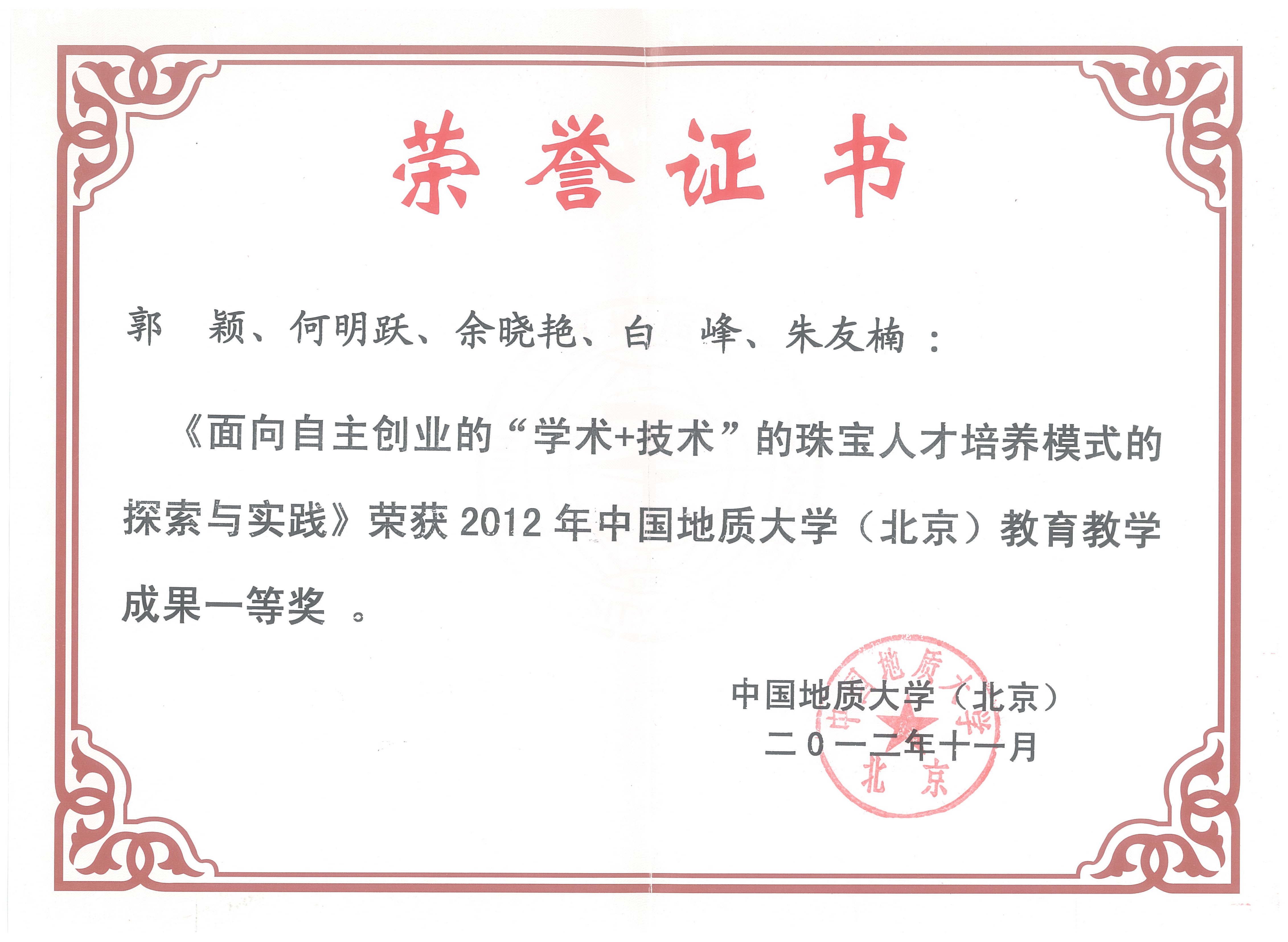 《赏珠宝品文化》获中国地质学会 第二届优秀科普产品奖