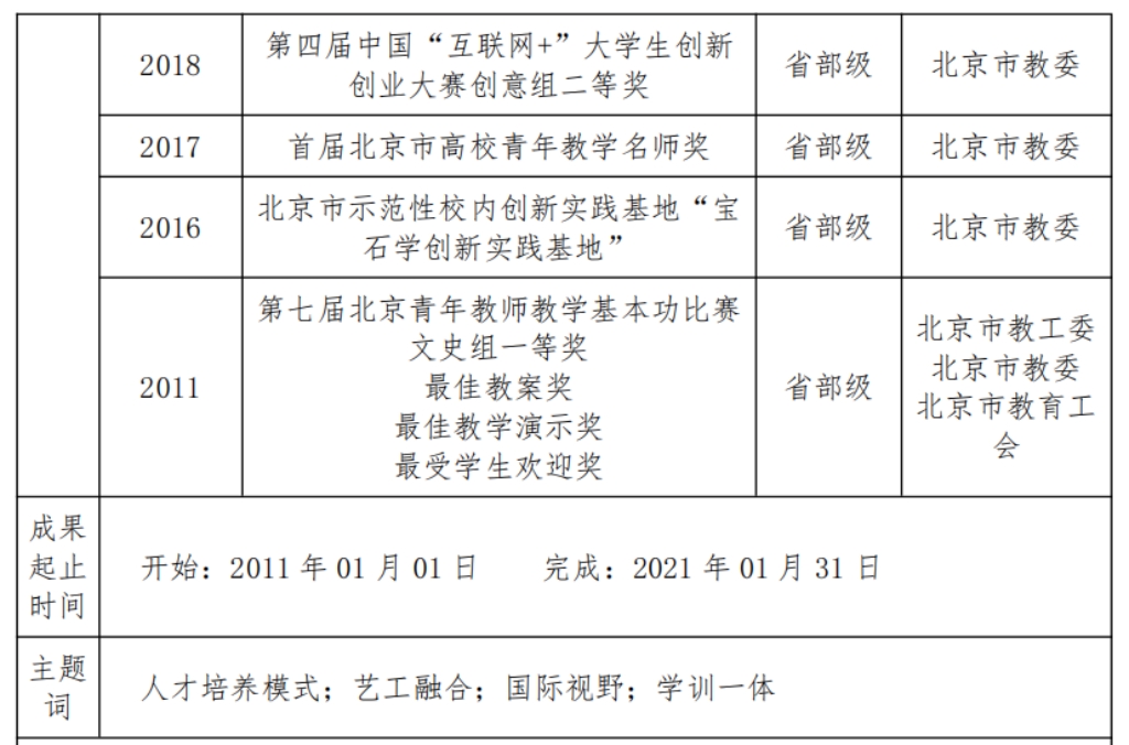 成果名称:理工科高校具国际化视野的艺工融合人才培养模式的实践与创新