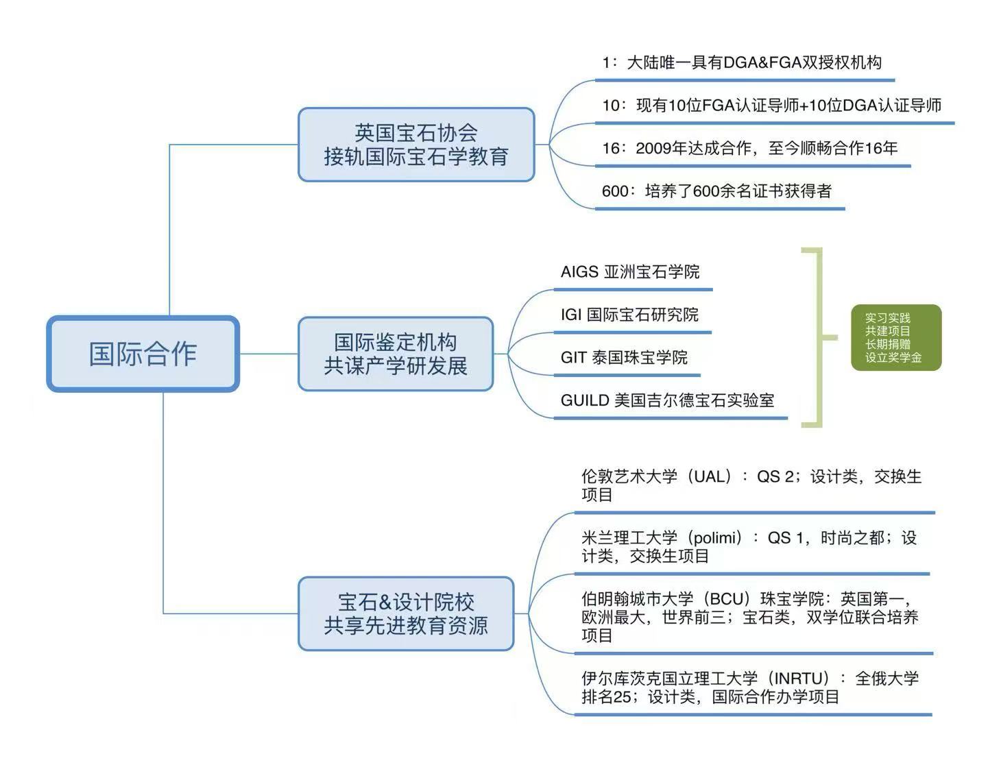 行业协会层面:联合中国珠宝玉石首饰行业协会,输送学生实习实践,参与举办珠宝展会;