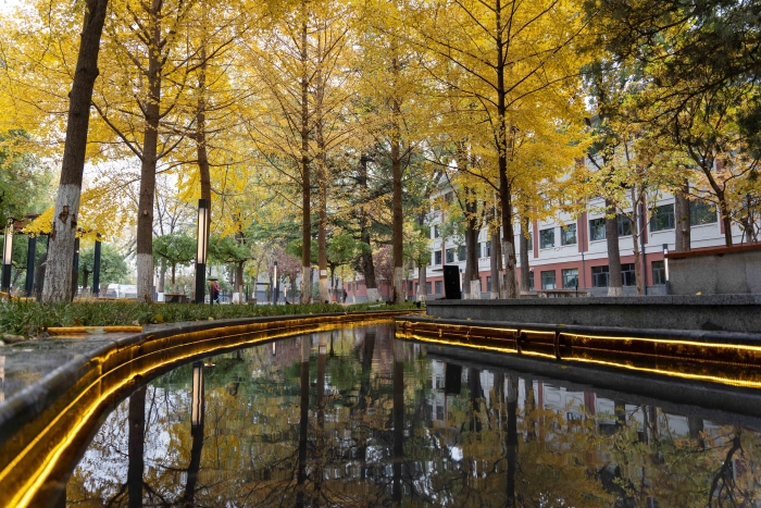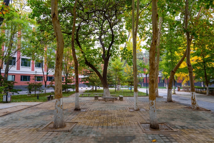 森园,寓意“十年树木,百年树人”,象征着立德树人的根本任务。夫森园者,多嘉木也。有百丈之松杉,伴三千之桃李。密挡西风,深藏北地。喧嚣得以隔离,浮躁因之回避。有毕业林木可直观,有枝连之树供遐思。傅履不辞,学踪纷至。玉兰花动,香飘春日之幡;银杏叶煊,色染秋天之帜。夏日阴凉,冬晖恣肆。引鸟雀以低旋,聆师生之博议。一岁岁,树名园之栋梁;一批批,成强国之大器。