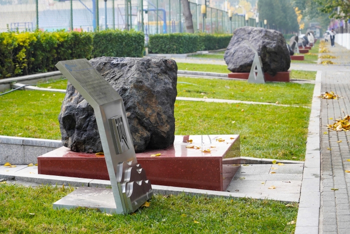金石坪,展示了14件矿石大型标本,是11个校友单位或个人精心挑选、捐赠的典型大标本。代表性大型标本主要有:产于世界著名金矿矿集区——胶东半岛和小秦岭的金矿石,我国规模最大的铜矿带——青藏高原冈底斯驱龙、甲玛和知不拉铜矿石,国内最大、世界第三的金川岩浆型铜镍硫化物矿石,我国著名的长江中下游铁铜金多金属成矿带的宁芜凹山铁矿石,中国钼都栾川的钼多金属矿石和铅锌矿石,还有云南北衙多金属和金厂河铜铅锌矿石、青藏北喜马拉雅的扎西康锑铅锌矿石、四川拉拉铜金矿石等。金石坪的“坪”字取自谐音“平”,为平安顺遂之意;谐音“瓶”,寓意着摇篮里的甘露“瓶”滋润北地学子茁壮成长。七十年来风雨路,勇攀地质高峰,更见精诚所至,金石为开。