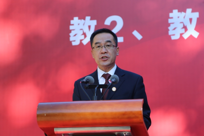 数理学院教师马兆海作为教师代表发言,他表示,新的环境、新的起点,更要有新的心态、新的面貌。作为一名青年教师,将以更加饱满的热情,积极的心态投入工作。坚持以“立德树人”为根本任务,肩负起“为党育人、为国育才”的光荣使命,严于律己、以身作则、爱岗敬业,争做四有好老师,为学校发展贡献教师力量。