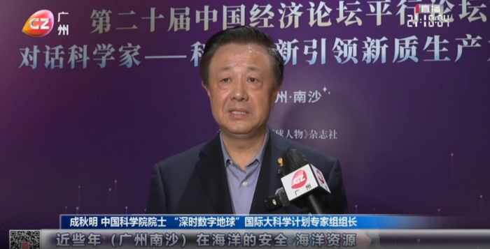 11月18日,第二十届中国经济论坛在广州南沙举行。本届论坛以“中国式现代化与‘十五五’中国经济展望”为主题,汇聚各界专家学者,共同为我国在“十五五”时期的高质量发展建言献策。中国地质大学(北京)教授、中国科学院院士、“深时数字地球(DDE)”国际大科学计划专家组组长、执行委员会主席成秋明受邀出席,并在“对话科学家——科技创新引领新质生产力发展”平行论坛上发表主旨演讲,受到《人民日报》《环球人物》《广州新闻联播》等多家主流媒体关注报道。