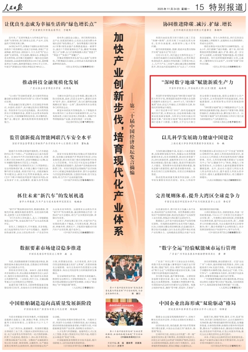 On November 18, the 20th China Economic Forum was held in Nansha, Guangzhou. Themed "Chinese Modernization and China's Economic Outlook for the 15th Five-Year Plan," the forum brought together experts and scholars from various sectors to jointly contribute insights and suggestions for China's high-quality development during the "15th Five-Year Plan" period. Academician Cheng Qiuming—Professor at the China University of Geosciences (Beijing), Academician of the Chinese Academy of Sciences (CAS), Head of the Expert Group of the "Deep-time Digital Earth (DDE)" International Big Science Program, and Chair of the Executive Committee—was invited to attend. He delivered a keynote speech at the parallel forum titled "Dialogue with Scientists—Tech Innovation Leading the Development of New Quality Productive Forces," garnering significant coverage from multiple mainstream media outlets, including People's Daily, Global People, and Guangzhou News.