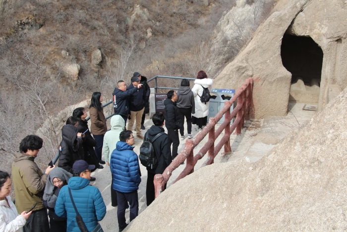 为加强校企合作,推进地学科普辐射社会,3月3日,我校校友与社会合作处处长于清海、博物馆馆长施光海带队赴延庆区古崖居景区调研交流。八达岭文旅集团副总经理蔡子翠、景区运营公司经理宋威、古崖居景区分公司经理杨永兴、古崖居景区分公司副经理池雨佳、朱锋出席调研活动。