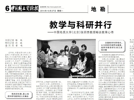 在地大(北京),地学院规定,一般教师给本科生上课的课时要达到150学时,对“杰青”比较特殊,要求达到50学时。张招崇说,自己不想享受“特殊”待遇。他对著名教育家钱伟长的一番话印象至深。钱伟长认为,“师资的资质在某种程度上决定学生的素质”,并主张“要培养全面的人,培养有创新精神的人。教授应该讲基础课,讲课与科研两不误才是好老师”。