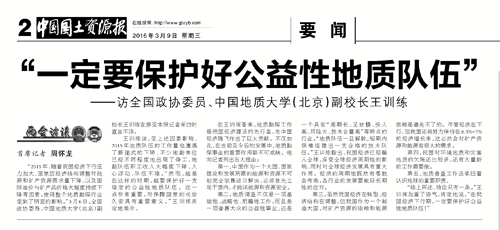 一定要保护好公益性地质队伍——访全国政协委员、中国地质大学(北京)副校长王训练