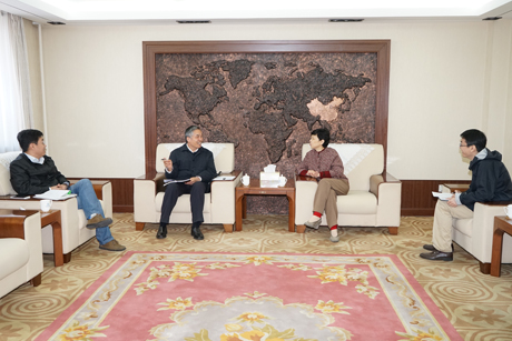 双方就如何做好统战工作进行了深入交流。海淀区委统战部党派组组长王选革、我校党委统战部部长张大林陪同调研。(摄/田萌)
