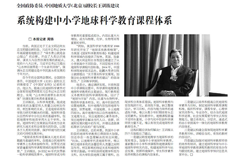 3月9日,《中国矿业报》:系统构建中小学地球科学教育课程体系