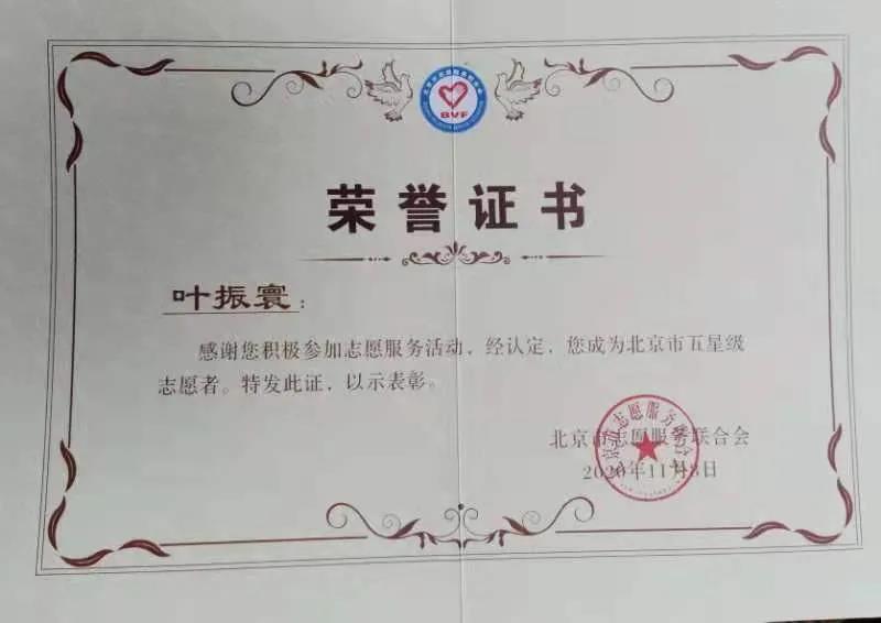民盟地大支部叶振寰教授荣获“北京市五星级志愿者”称号