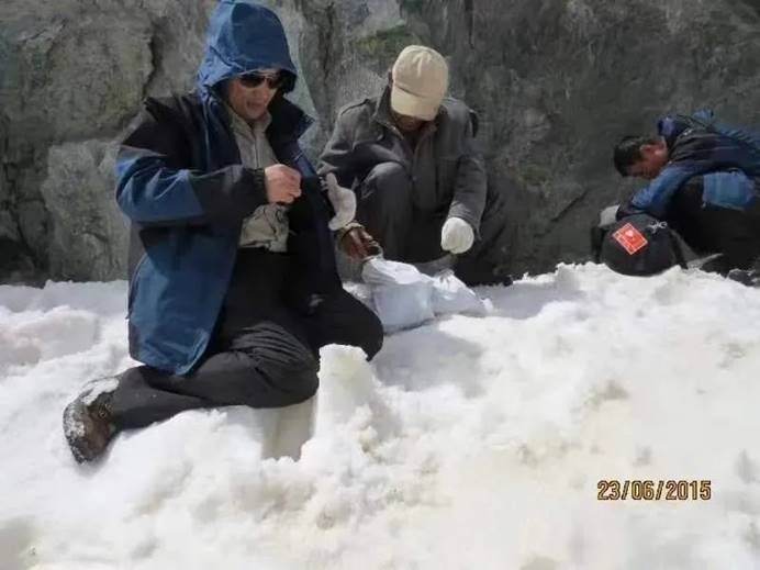 “大山沟壑,异常难行,越野车根本无法通过,有时我们只能选择拖拉机。”回忆当初去天山的情景,施光海记忆犹新。当黑夜穿越河流之时,由于河道阻碍,拖拉机轮胎卡在河中间无法前行,发动机也出现异响。“没办法,只能跳水!”施光海和团队成员小心地翻过挂斗车栏杆,踩到拖拉机轮胎上,再跳入河水中。湍急而冰凉的河水突然间没过小腿肚,感觉被冻住似的麻木。“我们强忍着趟过河床,在河边坐了一夜。第二天虽然用钩车把拖拉机拽了出来,可是在距离矿顶还差3000米的时候它还是坏掉了。”余下的路程,只能靠两条腿徒步前行。一夜没睡又被河水侵袭,然后在高海拔缺氧状态下沿陡峭的山路步行,等走到矿顶的帐篷里,施光海和年轻的研究生都已经筋疲力尽……“下山的道路是令人心情愉悦的,感受含氧量升高带来的动力恢复的同时,一方面有把石样标本采集后的满足感,同时也欣赏到沿路神奇的自然美景。”施光海说。