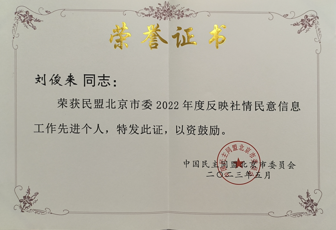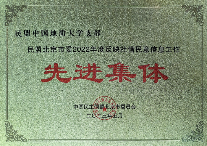 近日,民盟北京市委举办2023年社情民意信息工作会,民盟地大支部荣获多项表彰。民盟地大支部荣获年度反映社情民意信息工作先进集体,盟员刘俊来教授荣获年度反映社情民意信息工作先进个人,盟员施光海教授荣获年度反映社情民意信息先进工作者。