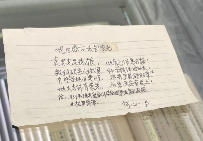 参观后,社员们从袁复礼先生的事迹出发,开展了广泛讨论,纷纷表示要汲取老一辈科学家的智慧和精神力量,在科研教学工作中继承学校“艰苦朴素、求真务实”的优良传统,牢记九三学社爱国、民主、科学的精神,不断进取,锐意创新。委员会最年长的社员何心一教授感慨良多,当场作诗一首,表达了对袁先生的怀念。