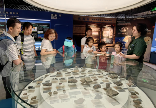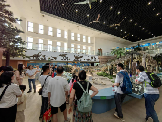随后,在中国地质大学博物馆讲解员的带领下,社员和小朋友参观了博物馆。该馆有三层楼,收藏的标本琳琅满目,小朋友们对这些精美的展品产生了极大的兴趣。馆内展出的巨大完整的恐龙化石和各种精美夺目的矿石宝石标本让孩子们目不暇接。中国地质大学博物馆馆长详细介绍了博物馆的发展历程,逐步成为国内外知名的地质科学研究和科普教育基地,还讲述了博物馆丰富展品,提升科研能力的精彩故事。
