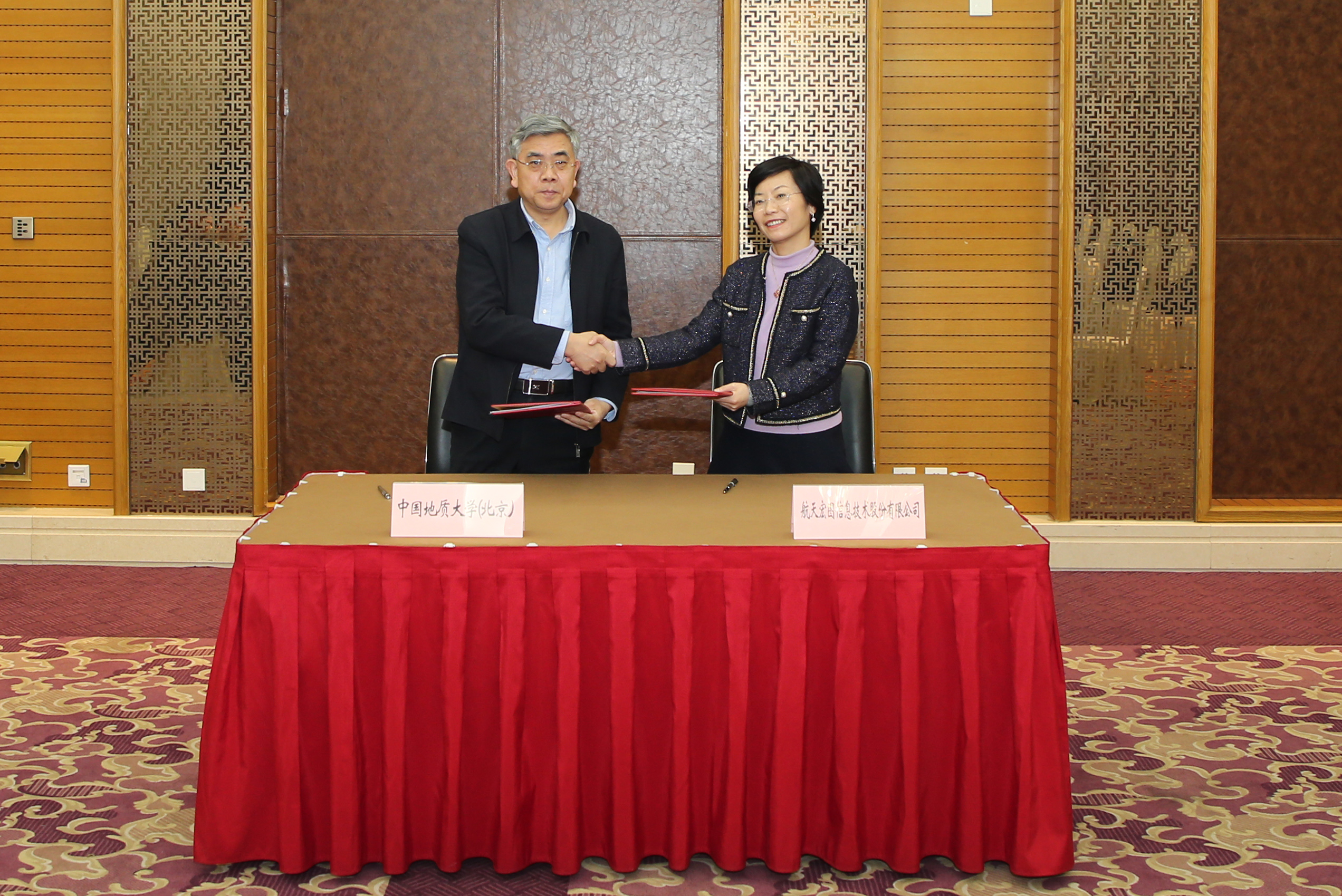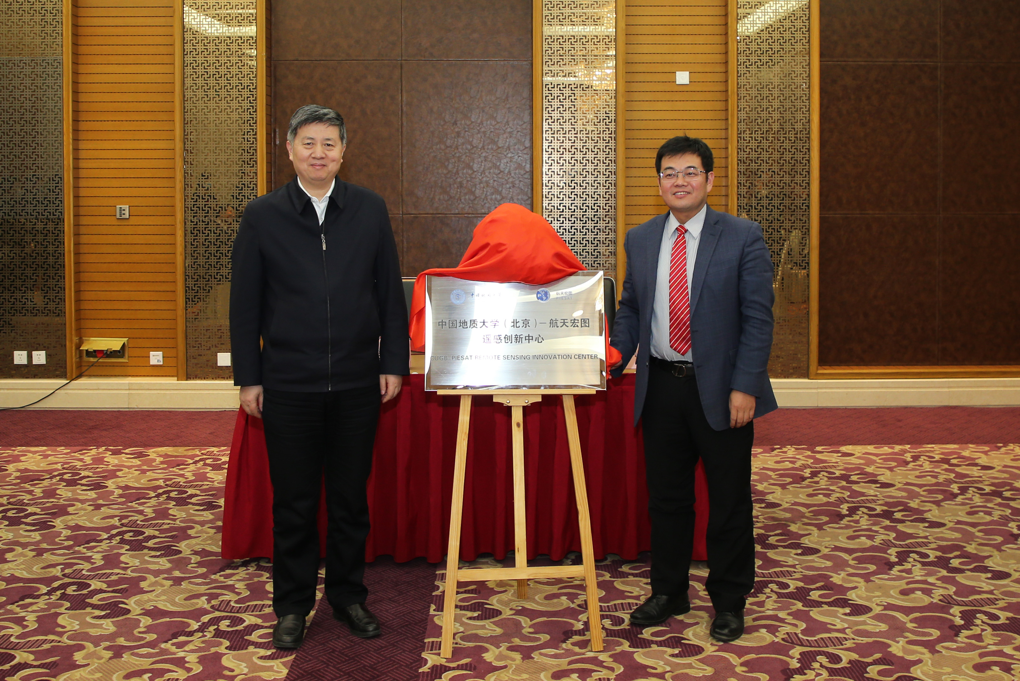 仪式由副校长刘大锰主持。校长孙友宏与航天宏图创始人、董事长王宇翔共同签署战略合作协议,并为共建校企合作平台“中国地质大学(北京)—航天宏图遥感创新中心”揭牌。副校长王果胜与航天宏图高级副总裁施莲莉签署捐赠协议。