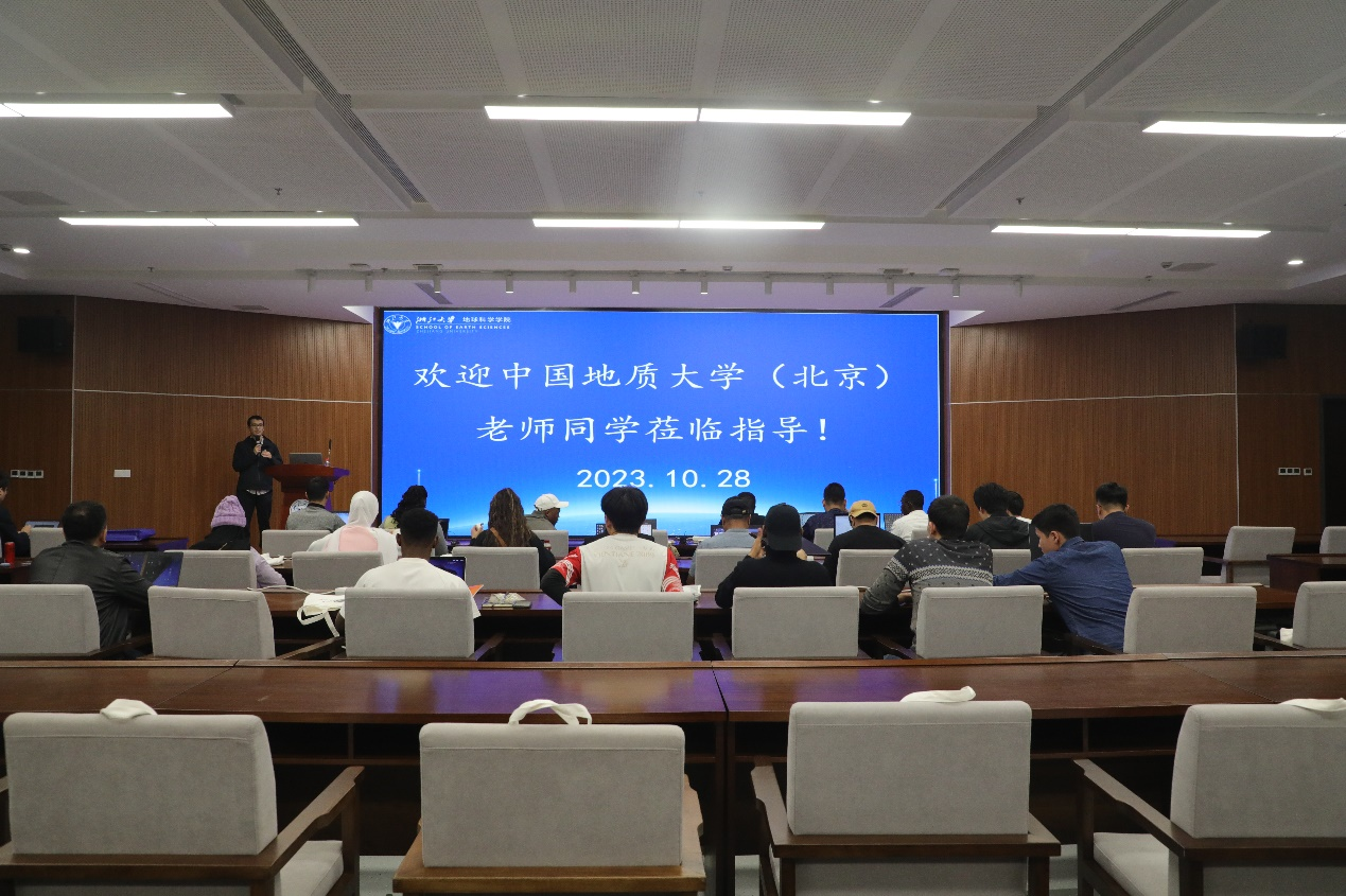在浙江深时数字地球国际研究中心,负责人向留学生接受了我国开展国际合作的具体举措和DDE计划的具体情况。当前,国际大科学计划和大科学工程是世界科技创新领域重要的全球公共产品,也是世界科技强国利用全球科技资源、提升本国创新能力的重要合作平台,DDE计划是典型代表。留学生观看了大科学计划介绍视频,系统了解 DDE 计划核心理念价值、在数据、知识、模型、算力等各方面的进展与成果和取得的重要科学成果。重点学习了Deep-time.org(包括Earth Explorer)、DDE Scholar 系列产品(Deep Literature、Deep Shovel等)、DDE Outcrop 3D、Web-GPlates和MPE矿产资源预测平台等核心数字化产品。DDE计划研发人员还现场向留学生开展了数字化产品的培训,详细讲解了地貌平台各项功能,包括地貌数据上球,地貌案例等,详细展示全球地貌图数据,介绍地貌学工作组任务与愿景。详细讲解了MPE平台各项功能,包括矿产数据上球,矿产预测工作流等。留学生进行了现场实践和交流。