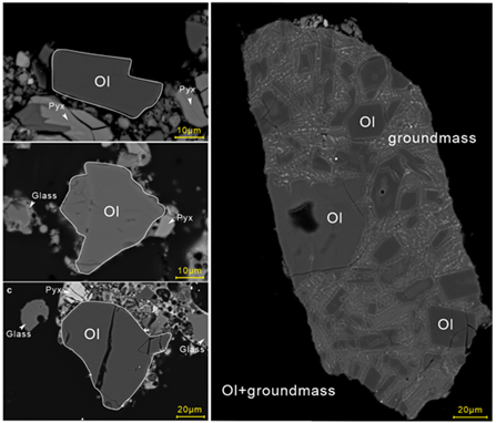 图1 嫦娥六号橄榄石代表性BSE照片。Ol,橄榄石。Pyx,辉石