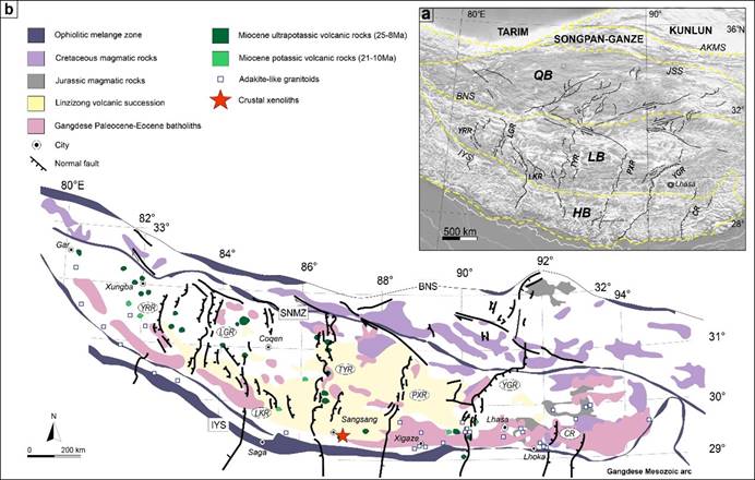 地质过程与成矿预测全国重点实验室“深部过程与物质架构的成矿控制”研究团队的博士生孙文瑞在导师王瑞教授指导下,与莫纳什大学Roberto Weinberg教授以及我室刘力特任教授、张亮亮副研究员开展合作,通过对冈底斯带桑桑下地壳捕掳体(图1)进行锆石U-Pb年龄的深度剖面分析,成功重建了220 Ma以来整个近2000 km长的冈底斯弧下地壳的演化历史,为追踪大陆地壳的演化提供了一种全新的简单高效的方法。主要研究结果如下: