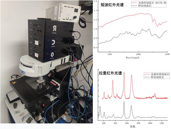 可完成对物质表面可见光光谱、短波红外光谱、激光拉曼光谱的单点测量和填图,用以分析样品表面物质成分和结构。其中激光波长532nm,拉曼光谱波数范围:100-1900cm-1,光谱分辨率7cm-1,光斑在100X物镜时为1um。反射光谱波段范围400-2500nm,在1100nm-2500nm其光谱分辨率12nm,在25X物镜时光斑尺寸为50um。