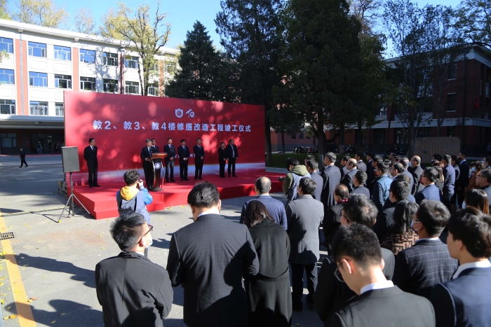 11月7日—校庆日,学校举行教2、教3、教4楼修缮改造工程竣工典礼。校领导马俊杰、孙友宏、刘大锰、董朝霞、林善园、武雄、赵志丹出席竣工典礼。副校长段翔主持典礼并介绍了三栋教学楼的修缮改造情况。