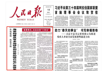 《人民日报》头版头条关注:海南构建具有本地特色和优势的现代化产业体系