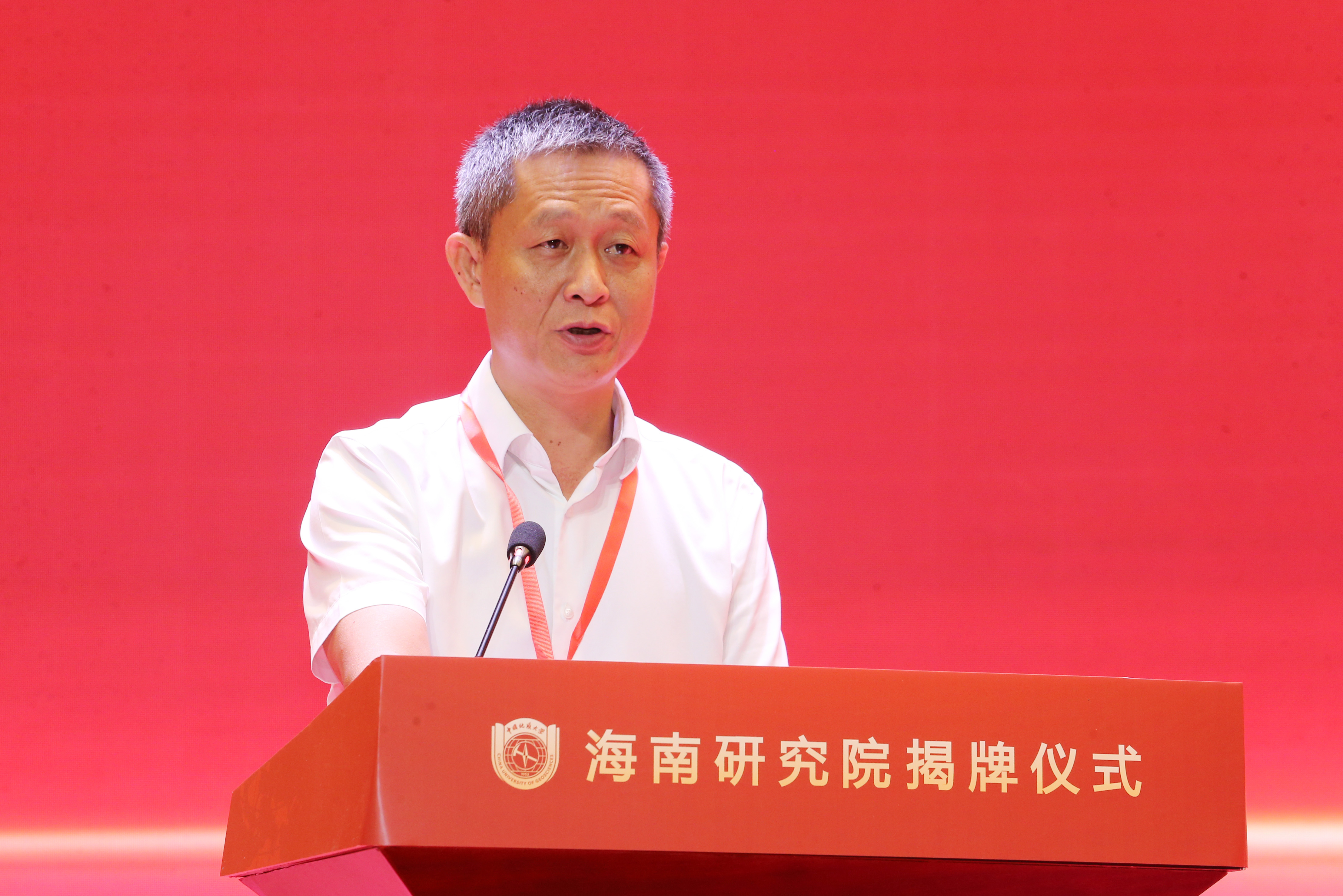 孙友宏在致辞中指出,中国地质大学(北京)海南研究院揭牌成立,是学校发展史上的大事,是标志着校地合作初见成果的要事,更是见证学校与三亚市、与海南省“双向奔赴”的喜事。他指出,近年来,学校在巩固传统学科优势地位的同时,也超常布局急需学科专业,促进学科间的交叉融合,营造健全的学科生态环境。学校在海南布局研究院和国际教育创新区,是学校准确识变、科学应变、主动求变的具体实践,为建成地球科学领域世界一流大学的目标注入了信心、激发了斗志。他强调,学校要以国际化视野、战略性眼光、前瞻性思考、全局性谋划,整体推进研究院建设,全力汇聚国内外顶尖科研力量,构建国际领先的海洋科学与技术研究平台与创新基地,为高质量科技成果转化和应用提供持续性的创新源头,为国家海洋强国战略提供强有力的人才支撑,为产学研培一体化建设协同化发展打造高标准的融合高地,为海南自由贸易港建设输出地大方案、提供地大智慧、贡献地大力量。