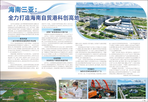 南繁种业是海南自贸港建设的三大未来产业之一。近年来,三亚市以三亚崖州湾科技城为主要载体,围绕打造南繁深海科创标杆,系统谋划科研基础设施和创新平台建设,以项目建设为抓手,以产业招商为突破,以优化营商环境为重点,初步形成以国家级科创平台为中心、优质科研资源和多元创新主体加速集聚的高质量发展新布局。