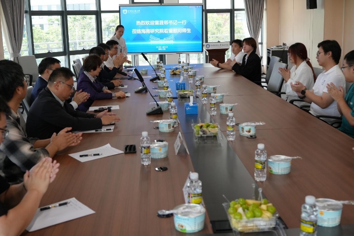 2025年12月20日上午,中国地质大学(北京)党委书记雷涯邻一行赴海南研究院慰问在琼师生,深入了解研究院建设发展和在琼师生工作学习情况,代表学校党委向坚守在教学科研一线的师生致以亲切慰问和诚挚关怀。学校教务处、国际合作与交流处、珠宝学院、海南国际学院等相关单位负责同志陪同调研慰问。