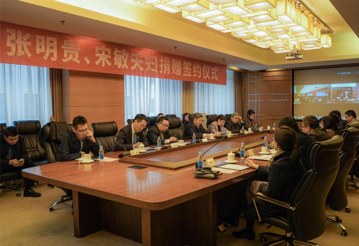 宋敏与王果胜签署了捐赠协议。刘伟代表学校接受捐赠支票,并为张明贵、宋敏夫妇颁发“优秀教育贡献奖”纪念牌和捐赠证书。